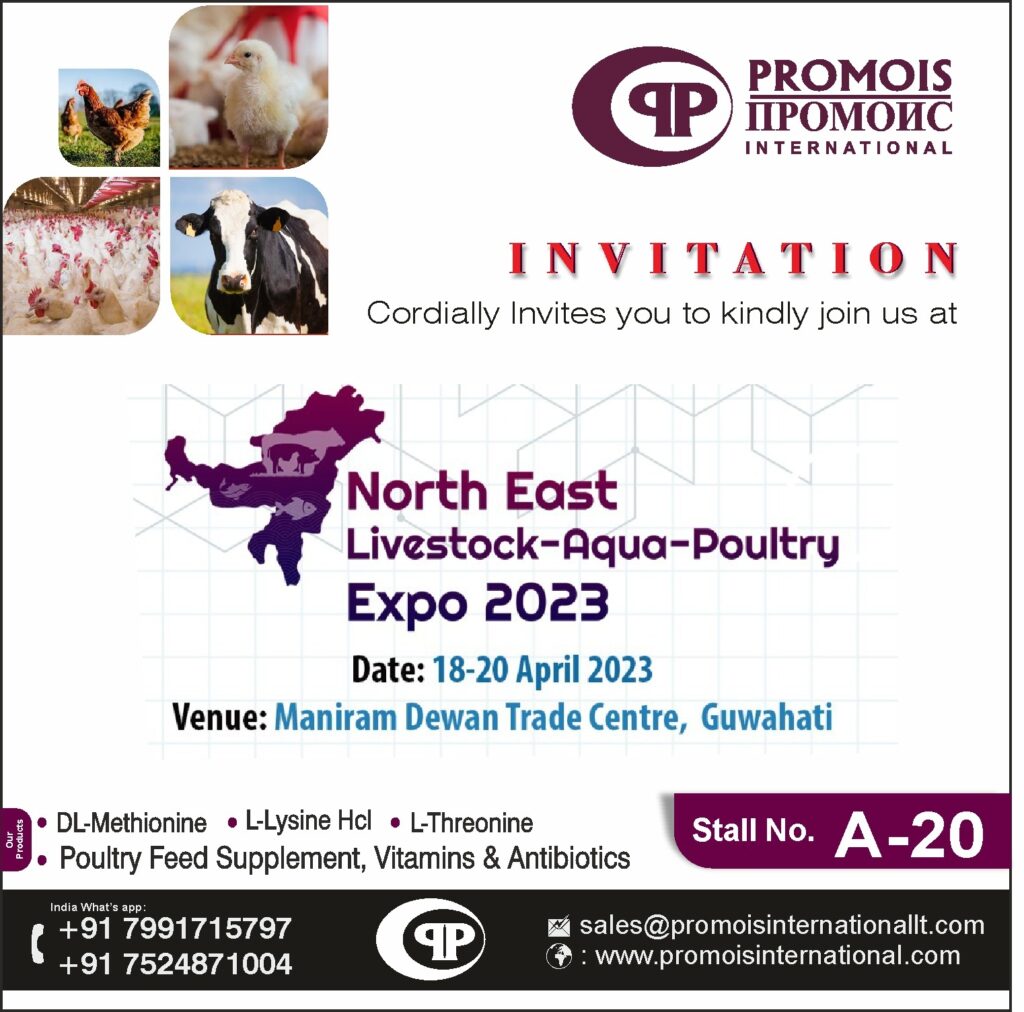 We Are Happy to Invite All Our Partners, Customers, and Everybody Who Does Not Yet Know Promois’s Advantages and Benefits to Visit Our Stand in North East Livestock-Aqua-Poultry Expo 2023.THIS EXHIBITION WILL TAKE PLACE ATOn 18-20 April 2023Venue: Maniram Dewan Trade Centre, GuwahatiStall No A-20 Promois International Offers Animal & Poultry Feed Raw Materials like […]